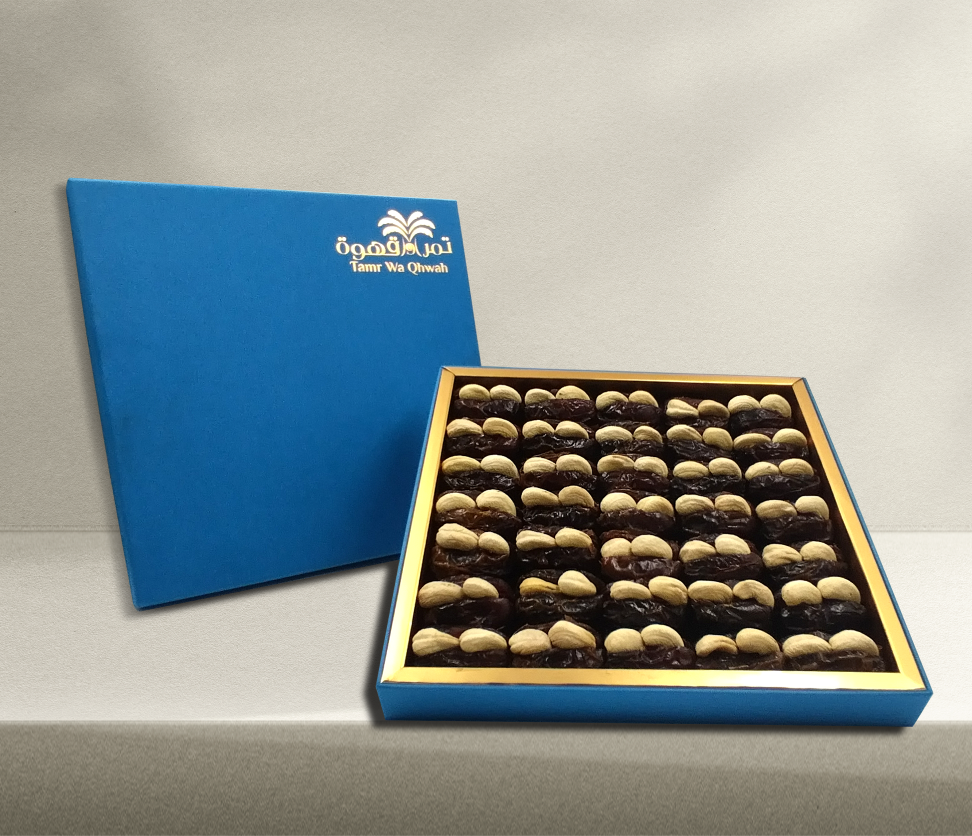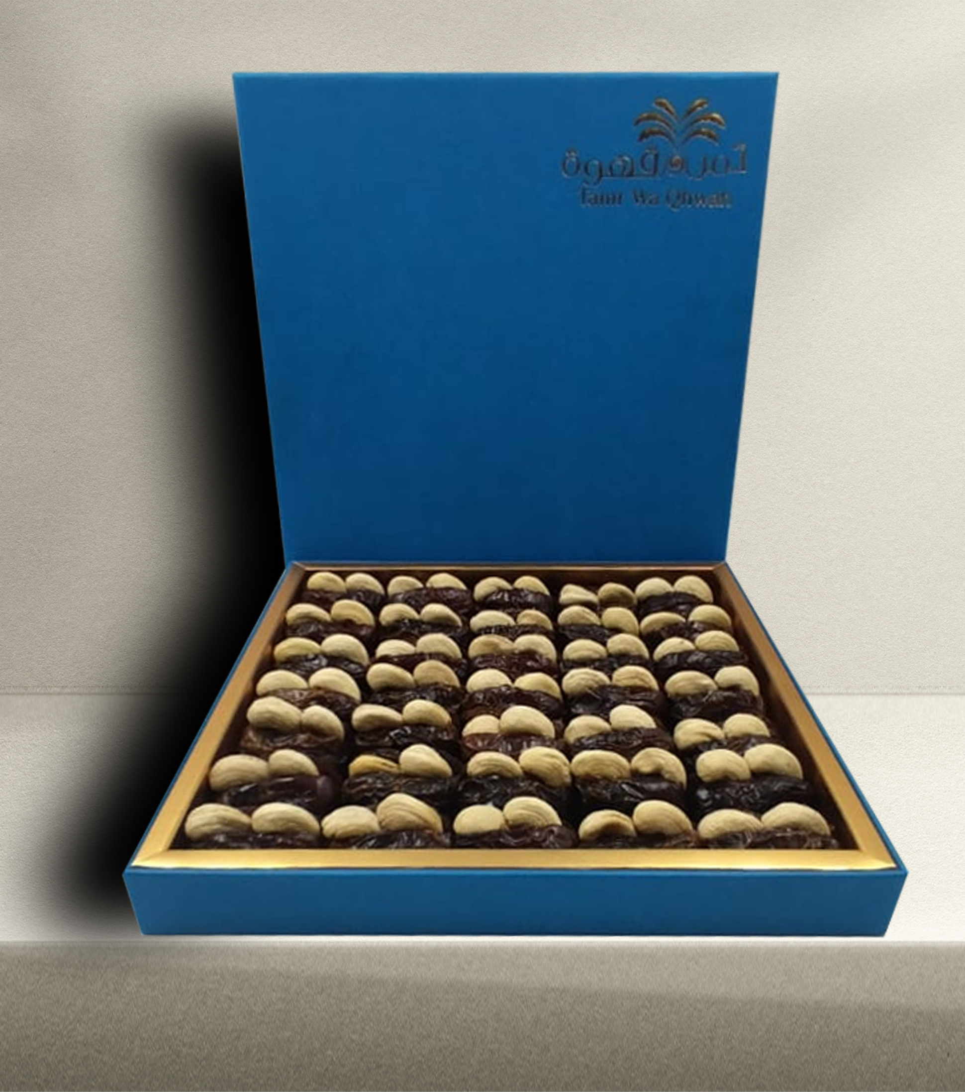 علبة فاخرة من التمور الممتازة المحشوة بالمكسرات