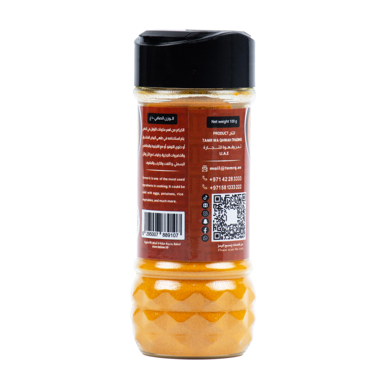 يضيف نكهة ولونًا غنيين: يضفي الكركم نكهة دافئة ومرّة قليلاً وترابية ولونًا أصفر زاهيًا - مثالي للكاري وأطباق الأرز والحساء واليخنات والصلصات والتتبيلات وحتى المخبوزات.