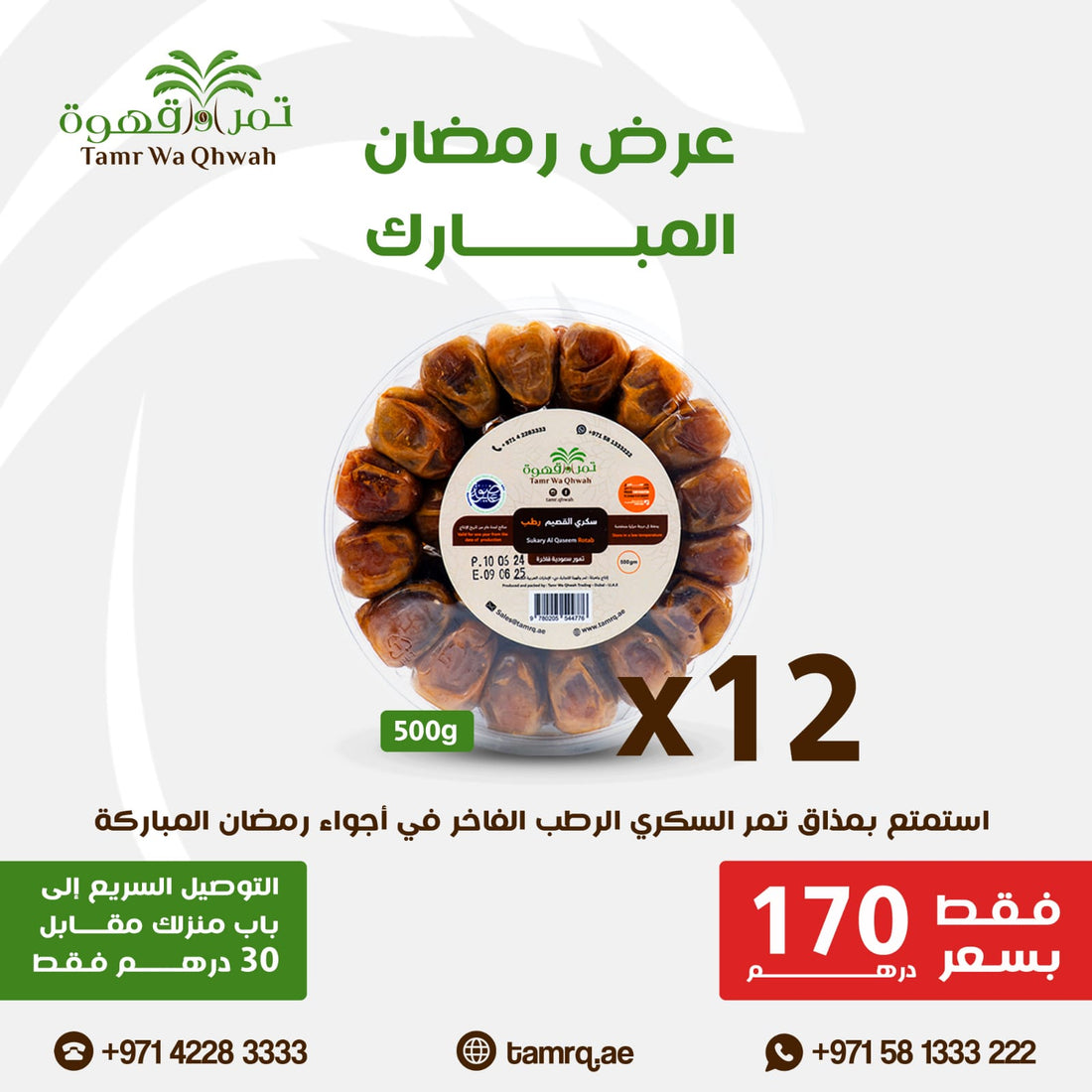 كرتون تمر سكري رطب ملكي 500 جرام (12 علبة)